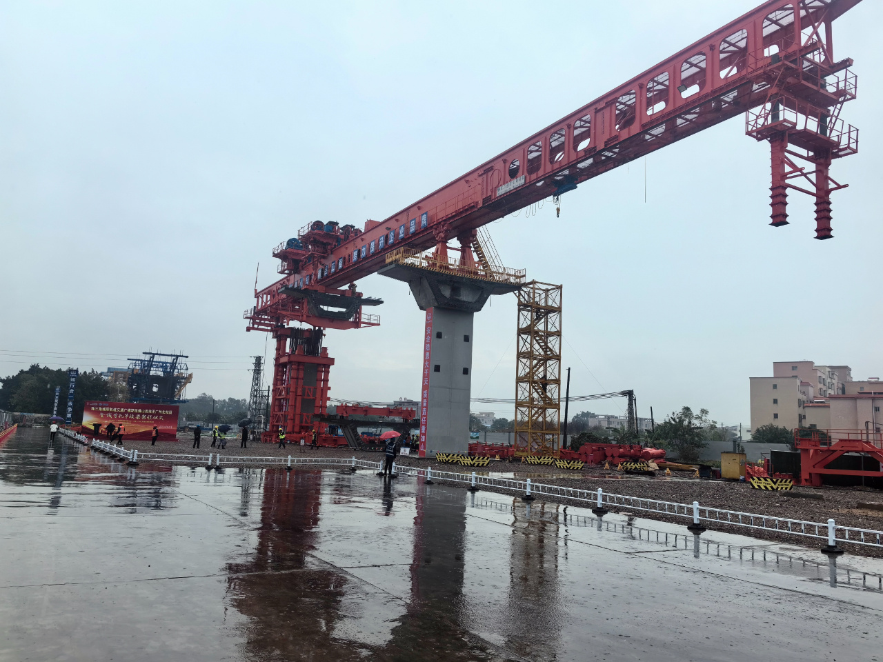 原标题:空中“搭积木”2024年澳门巴黎人棋牌,广佛西环全线首孔节段梁得胜架设